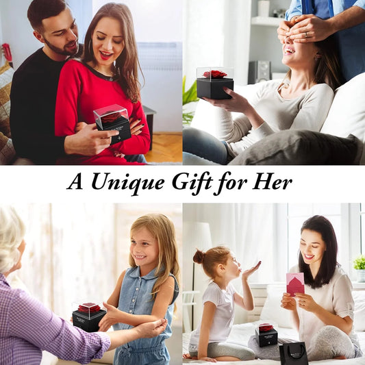 ETERNAL ROSE BOX - W/ENGRAVED NECKLACE & REALROSE Flower Gift Box Heart Pendant Customize Necklace Valentine'S Day Gift for Her